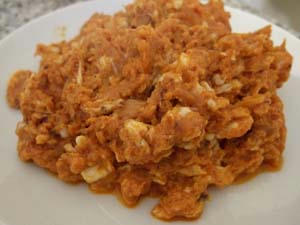 2)そこにトマト缶(ペースト)を少々、ハリッサ(ペースト状唐辛子)を入れ炒める。