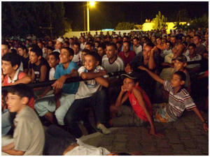 チュニジアのおばちゃん達が、豚っ鼻になりながらヒーヒー笑っていました。舞台に釘付けの青少年たち、キラキラしてるね。