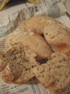今日は蒸したショルバをパンに捏ね入れてみました。ローズマリー・ゴマ・オリーブオイルも一緒に(お陰さまで二代目レーズン酵母が誕生し、今回は彼女の初仕事で御座いました)。
