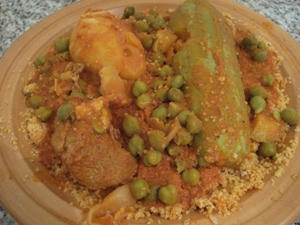 生ひよこ豆とズッキーニと羊肉のクスクス。クスクスは簡単そうでかなり難易度高し。